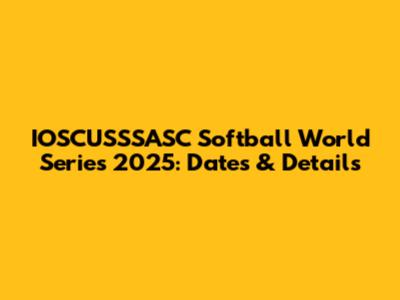 IOSCUSSSASC Softball World Series 2025: Dates & Details