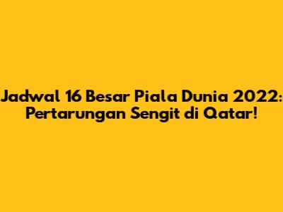 Hey guys, siap-siap nih buat nonton pertandingan seru di babak 16 besar Piala Dunia 2022! Kalian pasti udah gak sabar kan pengen tau jadwal lengkap dan siapa aja yang bakal bertanding. Nah, pas banget nih, gue udah siapin semua informasinya buat kalian. Mulai dari tanggal, waktu, sampai tim-tim yang bakal beradu strategi di lapangan hijau. Jadi, simak terus ya, biar gak ketinggalan momen-momen penting di perhelatan sepak bola paling bergengsi sejagat raya ini!