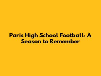 The spirit of Paris High School football is defined by these moments of triumph, resilience, and camaraderie. They serve as a reminder of the power of sports to bring people together and create lasting memories. These highlights not only showcase the athletic prowess of the players but also their ability to overcome adversity and achieve their goals. As the season progresses, fans eagerly anticipate more thrilling encounters and unforgettable moments that will further solidify the legacy of Paris High School football.